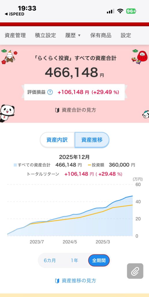 ※こちらは、私が実際に積立NISAを続けている画面です。